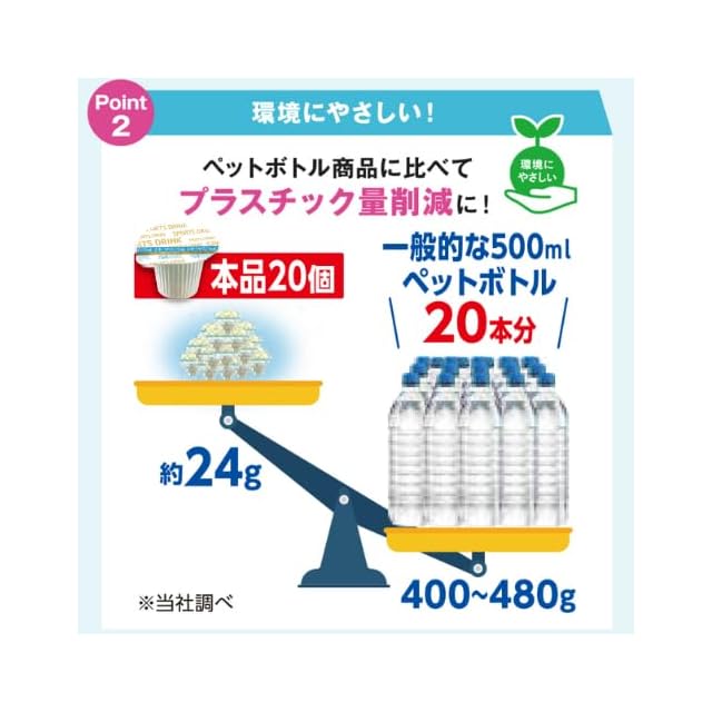 500~600mlペットボトル100本分!簡単ミネラル補給! 水にすぐ溶ける液状ポーションタイプで、持ち運びにも便利。 熱中症対策!ミネラルチャージ:1個(9ml)あたり Na:267mg Mg:4.5mg Ca:11mg K:100mg配合 栄養成分表示(1個/9mlあたり)エネルギー:15kcal、たんぱく質:0.04g、脂質:0g、 炭水化物:3.9g、食塩相当量:0.7g