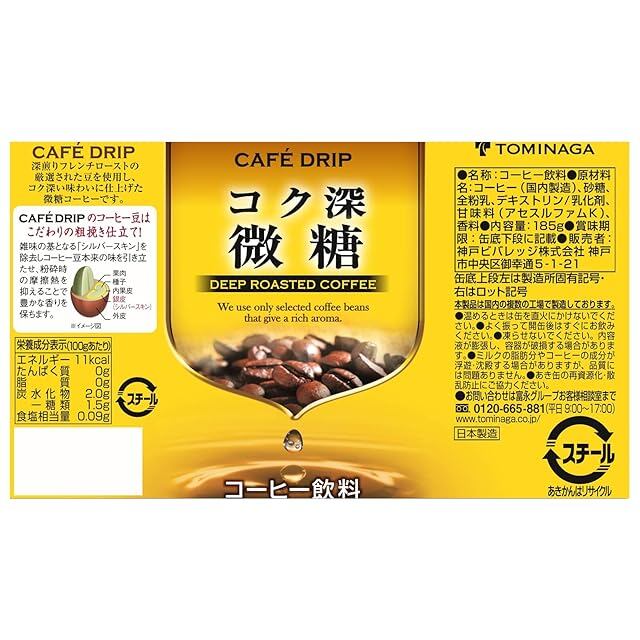 原材料:コーヒー、砂糖、全粉乳、デキストリン、乳化剤、香料、甘味料(アセスルファムK)