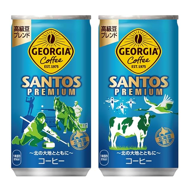 1975年に発売を開始して以来、幅広い層の皆様に愛され続けている「ジョージア」は、コーヒーのNo.1ブランドです。ロングセラーの一つである「ジョージアエメラルドマウンテンブレンド」を筆頭に、豆や製法にこだわった個性あふれるさまざまな味わいをお届けしています。ブランド名は、コカ・コーラ発祥の地である米国ジョージア州にちなんでつけられたものです。 ブラジルのサントス豆を使用して作られた「ジョージア サントスプレミアム」。発売17年目、コーヒーは浅煎り豆主体のブレンドに深煎り豆を加え、ミルクと砂糖には北海道産乳・糖に加え北海道産生クリームを使用することで、味わいを強化しました。 北海道では、「北海道限定デザイン缶」を販売し、売上の一部を財団法人北海道環境財団に寄付することで、自然保護活動を応援しています。