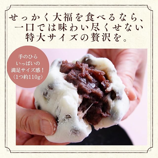 ずっしりと大きいビッグサイズで、豆、餅、粒あん、すべての素材と製法にこだわった至極の豆大福