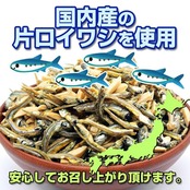 食品添加物を一切使用せず、塩分も控えめに仕上げました。お子様からお年寄りまで楽しめる、スナックです。カルシウムや鉄分を含んでおやつに最適です。