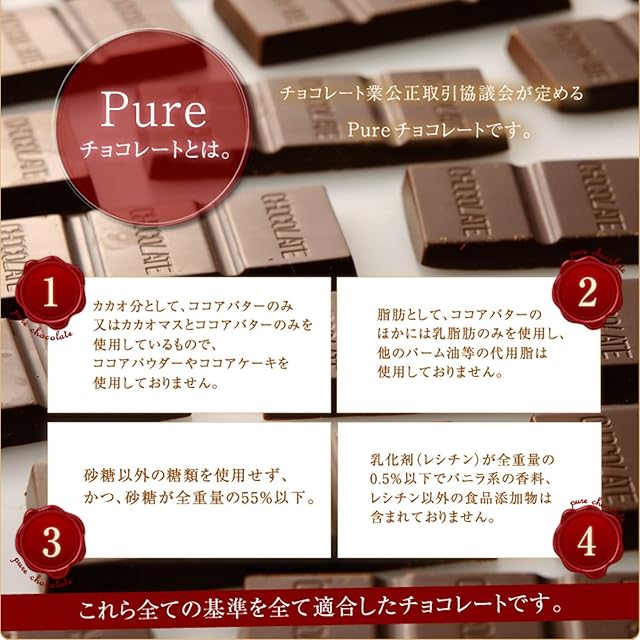 ✅国際基準のクーベルチュール:高級チョコレートの代名詞、抜群の口どけのクーベルチュールチョコレートでココアバター以外の代用脂は使用してません。