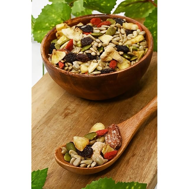 原材料:ひまわりの種(ひまわりの種(ブルガリア)、植物油、食塩)、かぼちゃの種(かぼちゃの種、植物油、食塩)、レーズン(干しぶどう、植物油)、バナナチップ(バナナ、ココナッツ油、砂糖)、シュガーカシューナッツ(カシューナッツ、砂糖、植物油)、シュガーアーモンド(アーモンド、砂糖、植物油)、クコの実/香料、(一部にアーモンド・カシューナッツ・バナナを含む)