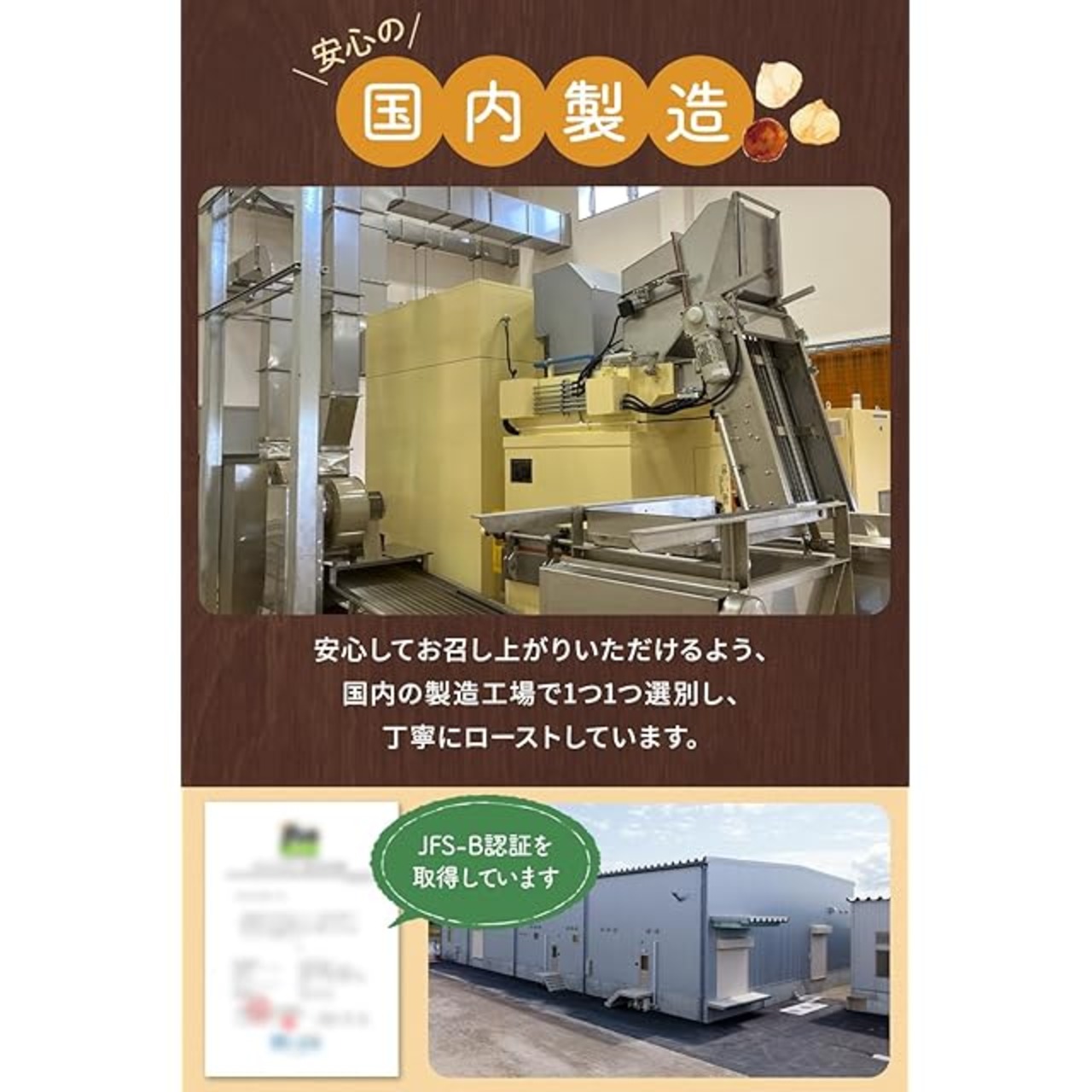 ✅【JFS-B認証済!安心の国内製造】安心してお召し上がりいただけるよう、国内の製造工場でマカダミアを1つ1つ選別し、丁寧にローストしています。