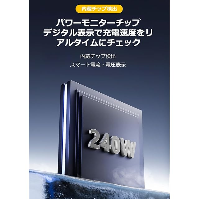 スマートリアルタイムデジタル表示:充電状態を一目で確認、リアルタイムで電流、電圧、及び電力をデジタルで表示。