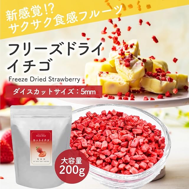 【多くのパティスリーで使用】「フリーズドライフルーツ」は、 著名なパティシエも認め、多くのパティスリーで使用されています。 ソフトクリームやバニラアイス、生クリームのトッピングや、 ヨーグルトに混ぜるとフルーツの甘味・酸味が加わり更に美味しくなります。