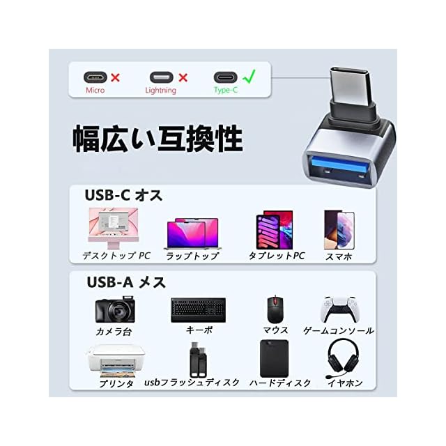 【幅広い互換性】USB-Cは簡単に携帯電話またはタブレット、任意の充電器やコンピュータに接続します。USB Type-CポートのあるPCやスマートフォン(MacBook Pro、MacBook Air、MacBook、Chromebook Pixel、Nexus 6P、Nexus 5X、Xperia、Galaxy、AQUOSフォンなど)から USBハブ、フラッシュメモリ、マウスなどがご利用頂けます。ほとんどのUSB-C機器とUSB-A機器を簡単に接続できます。