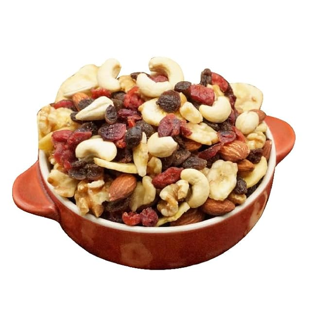 原材料名:素焼きアーモンド(アメリカ)、生くるみ(アメリカ)、 生カシューナッツ(ベトナム)、乾燥クランベリー(アメリカ)、 カリフォルニアレーズン(アメリカ)、バナナ(フィリピン)砂糖、植物油脂、ココナッツオイル/香料
