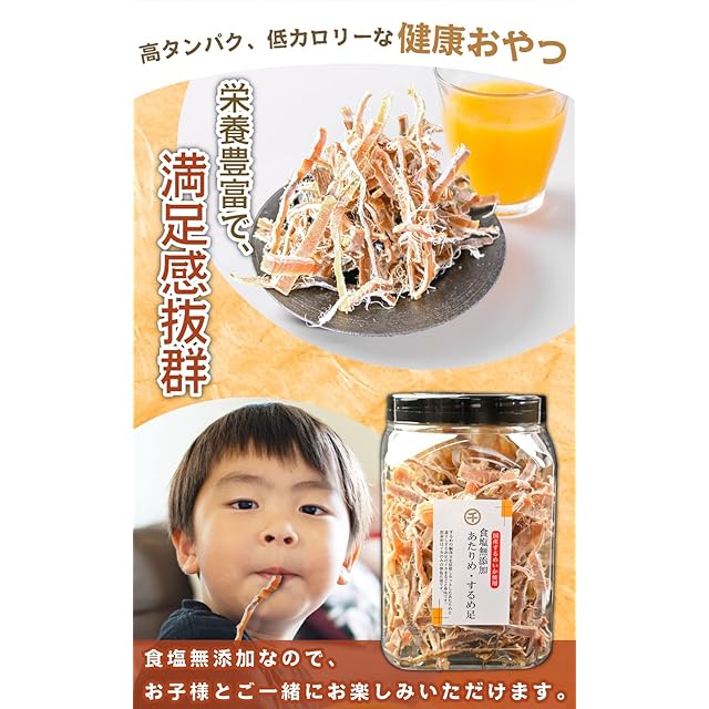 ✅【家族みんな、するめで健康おやつ】噛み応えのあるするめは、しっかりと噛むことで顎の力が強くなり、唾液の分泌を促します。さらに少量でも満たされた気持ちになるので、少しずつ楽しむことができる健康的なおつまみです。大人の方はもちろん、お子様のおやつとしても安心してお楽しみいただけます。