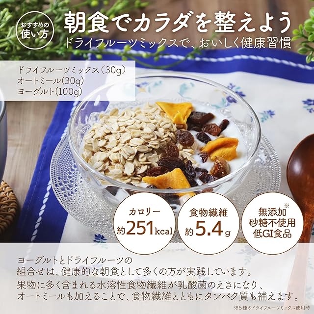 ✅砂糖不使用、無添加のドライフルーツミックスです。保存に便利なジップ付き袋となっています。