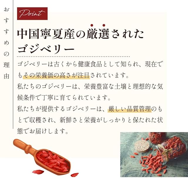 ✅【お召し上がり方】糖度が高いゴジベリーのみを取り扱っているため、そのままでも美味しく召し上がれます。もちろんお好みでトッピングやアレンジしてもOK!香り豊かなフルーツティーとして、栄養満点のスムージーとして、ヨーグルトにトッピングして、甘みと酸味のバランス抜群、食べごたえのあるゴジベリーをぜひお楽しみください!