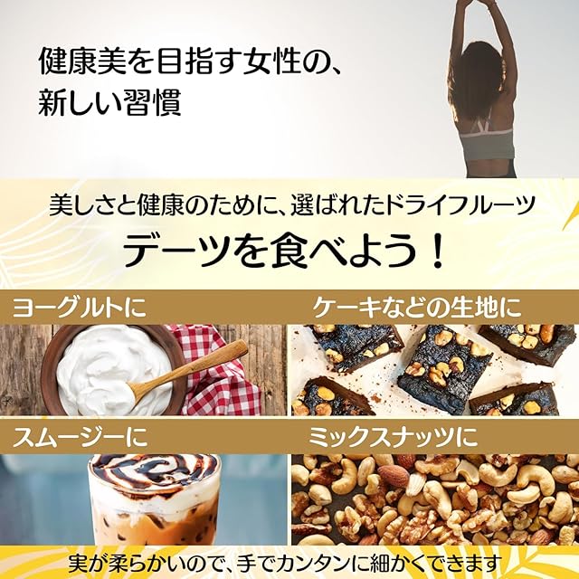 【スーパーフードのデーツ】スーパーフードのデーツは、一粒に栄養素がぎっしり。食物繊維・カリウム・マグネシウム・鉄・各種ビタミンなど栄養素がたっぷり含まれており、その栄養素の高さから、中東ではラマダンの断食後にデーツが重要な栄養補給源として食べられています。