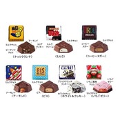 原材料:砂糖、全粉乳、植物油脂(大豆を含む)、カカオマス、水飴、ココアバター、準チョコレート、ココアクッキー(小麦を含む)、乳糖、ビスケット、キャンディコートアーモンド、きなこ、還元水飴、脱脂粉乳、コーヒー、加糖練乳、ゼラチン、クリーム加工品、練乳パウダー、ココアパウダー、いちご濃縮果汁、でん粉、ホエイパウダー、もち粉、寒天、食塩/トレハロース、乳化剤、甘味料(ソルビトール)、香料、膨脹剤、ゲル化剤(ペクチン)、酸味料、光沢剤、野菜色素、乳清ミネラル