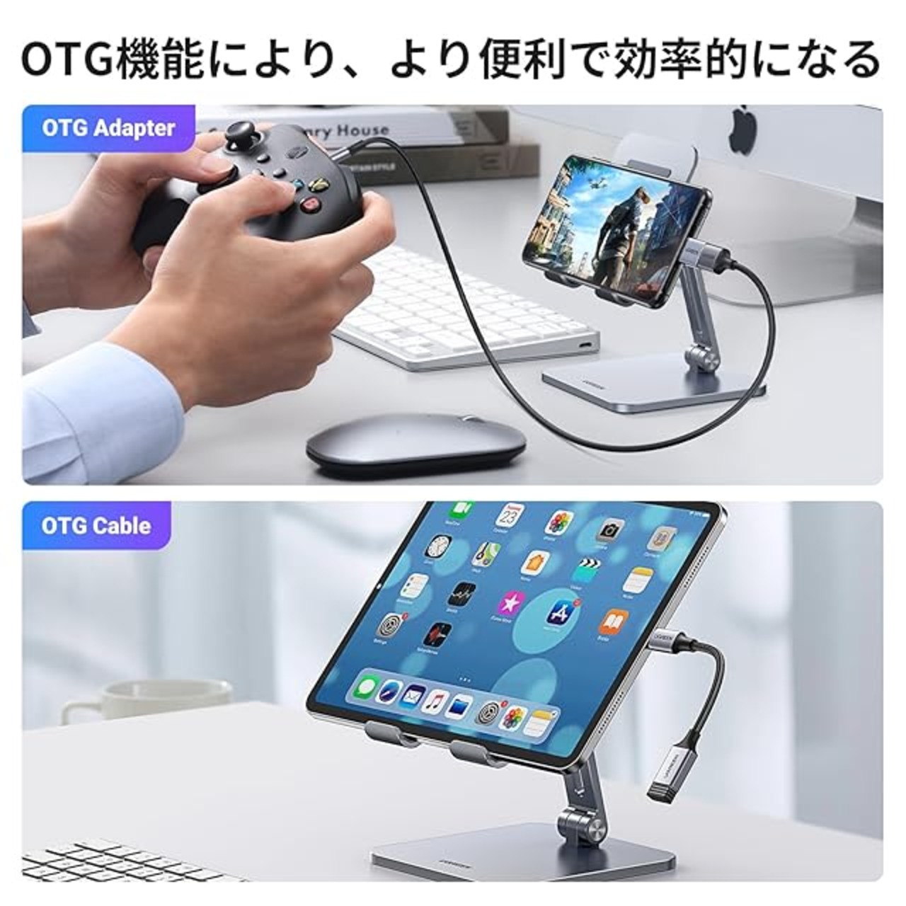 【OTG機能搭載】外付けHDD、USBメモリ、マウス、キーボード、ゲームコントロール、カードリーダー、プリンター、カメラなどのUSB機器をUSB Type-C端子のスマホやタブレットに接続可能です。手元のUSB機器を最大で活用できます。