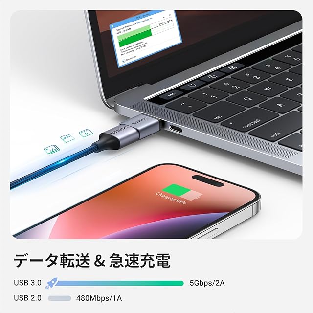 【高速転送&急速充電】USB3.0規格に準拠し、USB2.0より約10倍速くなるタイプC変換アダプタです。大容量のHD映画や仕事ファイル、記念写真等をわずか数秒で転送完了できます。タイプC USB変換アダプターは最大9V/2AのUSB-Aポートを備えたデバイスの充電もサポートします。