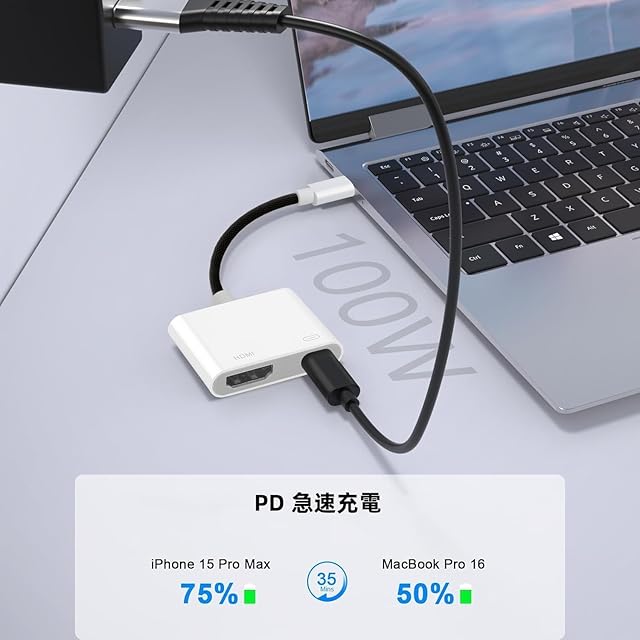 【新版2in1 Type-c hdmi変換ケーブル】『大画面のテレビでスマホの画面を楽しみたい!』という気持ちに応え、Type C アダプタは高品質IC純正チップを採用し、安定で高速的なデータ伝送を実現し、差し込みだけで4K UHD 高画質の動画や映像を楽しむことができます。ミラーリングしながら、100W急速充電もできるため、電源切れの心配も要らなく、映画やゲームを快適に楽しむことできます。自分用にも家族や友達へのプレゼントにも最適です。