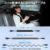 【車用 コイル ライトニングケーブル】車用コイル状 iPhone充電ケーブルは伸縮自在なデザインで、通常の長さは45cmで、最大180cmまで伸ばすことができ、スプリングケーブルの合理的な長さを提供し、コパイロットや後部座席での充電を容易にします。USB Lightning ケーブルはコイル状になっており、ポータブルで絡まりにくく、車内を整理整頓し、車内の充電ケーブルの乱雑さに別れを告げ、運転をより安全にします。(張力の長さ:1m~1.8m,お好きな限り伸ばす。ご注意:充電ケーブルの伝送を保護するために、長さの限界まで伸ばさないでください。)