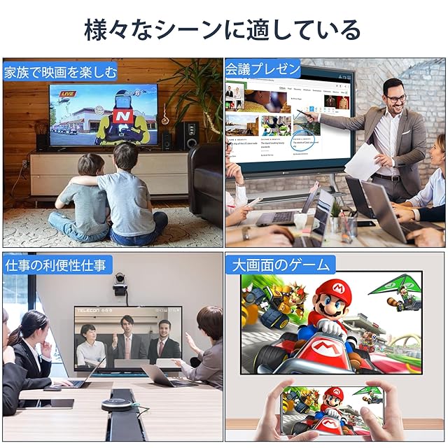 【幅広い互換性】Typec - HDMIアダプタは、DisplayPort代替モードをサポートするUSB-Cポートを備えたデバイスと互換性があります。iPhone 15シリーズ,iPhone16シリーズ/MacBookPro/MacBookAir/iPadPro/iPadAir/GalaxyS23シリーズ/GalaxyS22シリーズGalaxyS21/S20/Note20およびその他のUSB-Cデバイスと互換性があります。 その他のUSB Type Cデバイス。 「1.Sony Xperia (XperiaAceシリーズは非対応)とSharp AQUOS(senseシリーズは非対応)について、ほとんど非対応ため、ご注文前にぜひお問い合わせください。Sony Xperia 1 IV SO-51Cのコンテンツ保護で、ご購入することをお勧めいたしません。2.iPhone 16Eと (Lightning)に対応しません。3.不完全リストなので、購入前に商品紹介コンテンツの対応機種と不対応機種リストをご確認くださいませ。本製品は車載システムには使用できません。」