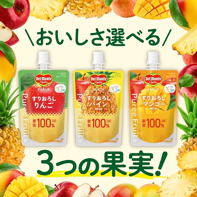 原材料:りんごピューレー(りんご(ニュージーランド又はチリ))、パインアップルピューレー、パインアップル果汁、りんご/酸味料、酸化防止剤(ビタミンC、酵素処理ルチン)、香料