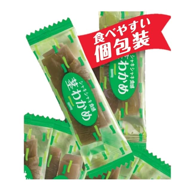 原材料:わかめ、砂糖、食塩、みりん、たん白加水分解物(大豆を含む)/ソルビトール、酸味料、調味料(アミノ酸等)