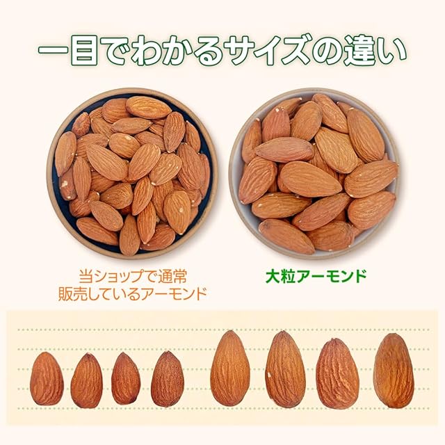 ● 自然農産物の諸注意 : 加工食品と違い、自然農産物は虫などを100%防止することはできません。産地および工場で、欠け・殻・虫食いを選別(除去)しておりますが、ご了承くださいますようお願い申し上げます。 ● ナッツは空気に触れると酸化が進みますし空気中の湿気を吸収する特性があります。 弊社では当日の気温や湿度に合わせてローストする時間を変えており、ロースト後の原料につきましては、製造責任者が官能検査(試食)を実施し問題がない事を確認した原料を使用しております。 また、ナッツ類は自然農作物の特性上、収穫のタイミングや気候により、食感や風味において個体差が生じる場合があります。 ★カリフォルニア産のアーモンドは米国農務省の基準に従い限られた農薬しか使用できないため、穀類を好む虫が付く場合があります。産地および自社工場で欠け・殻・虫食い等を選別(除去)しておりますが、自然農産物の性質上、虫などを100%防止する事は難しくなります。ご了承くださいますようお願い申し上げます。