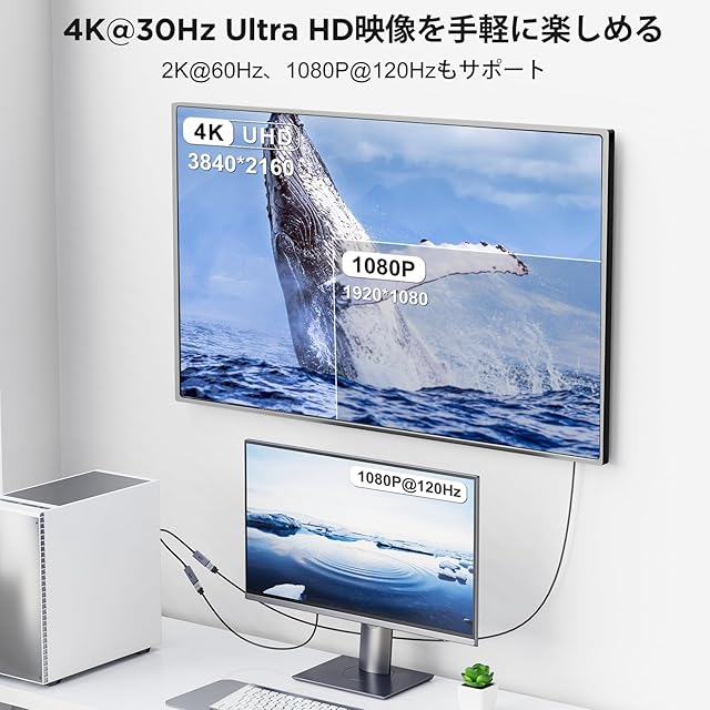 【3840×2160p@30Hz高解像度】弊社は適格請求書発行事業者です。ICZI Displayport HDMI 変換アダプタは4K@30Hzの解像度まで対応しています。大画面をより鮮明に、より開放的にし、シネマティックな映像を楽しむことができます。 会議用に画面をキャストするのも簡単です。2K @ 60Hz、 1080@ 120Hzなどと下位互換性があります。