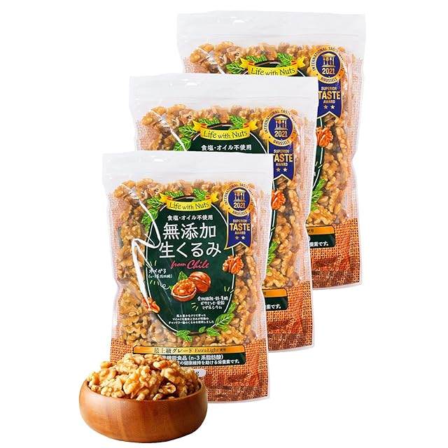 ?【二つ星受賞 無添加生くるみ】ITI(国際味覚審査機構)で二つ星を受賞。最上級グレード「ExtraLight」を厳選。実色が明るく、温暖な気候で育ったチリ産のくるみは明るい色味が特徴。※農作物のため形や色にバラツキがあります。風土豊かなチリで育ったマイルドな風味と甘みが特徴のチャンドラー種のクルミになります。