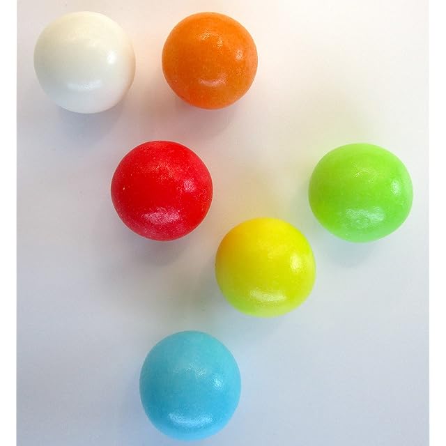 白 赤 黄色 黄緑 水色 オレンジの丸いガム