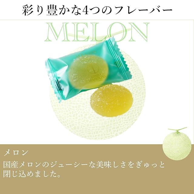 ■原材料:【白桃(ピーチ)】水あめ、麦芽糖、砂糖、桃濃縮果汁、粉末オブラート、ソルビトール、ゲル化剤(ペクチン)、酸味料、光沢剤、香料、乳化剤 【とちおとめ(ストロベリー)】水あめ、麦芽糖、砂糖、いちご濃縮果汁、粉末オブラート、ソルビトール、ゲル化剤(ペクチン)、酸味料、光沢剤、香料、乳化剤、アカダイコン色素 【メロン】水あめ、麦芽糖、砂糖、メロンピューレ、粉末オブラート、ソルビトール、ゲル化剤(ペクチン)、酸味料、光沢剤、香料、乳化剤、着色料(紅花黄、紅麹、クチナシ) 【日向夏】水あめ、麦芽糖、砂糖、日向夏濃縮果汁、粉末オブラート、ソルビトール、ゲル化剤(ペクチン)、酸味料、光沢剤、香料、着色料(紅花黄、パプリカ色素)、乳化剤