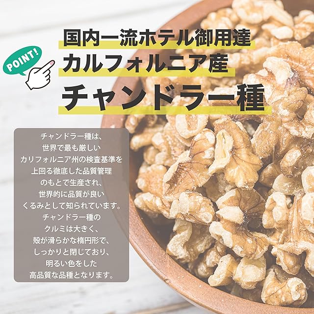 【安心の国内製造】■原材料名:くるみ(アメリカ カリフォルニア産)■内容量:1kg ■保存方法:直射日光・高温多湿をお避け下さい。※開封後は賞味期限に関わらずお早めにお召し上がり下さい。当ブランドは鮮度が高く、美味しい状態で召し上がって頂きたいため、保存料を使用せずにあえて短い日数設定としております。決して収穫から日数が経過している原材料ではございません。