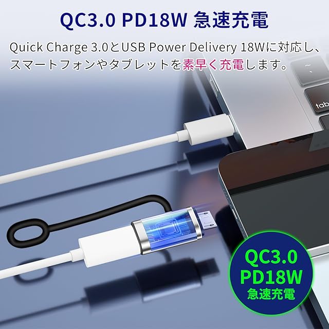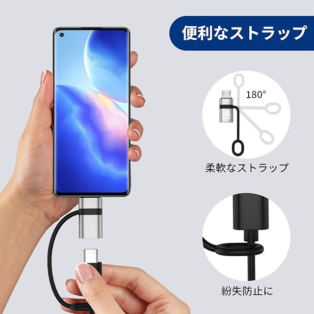 安心の日本企業 USB-C to Micro-USB 変換アダプタ データ転送 急速充電 microusb USB2.0 最大480Mbps 5V/3A Quick Charge 3.0規格 変換コネクタ アダプタ スマートフォン タブレット パソコン 56kΩレジスタ ストラップ付 アンドロイド 持ち運び uc0113bc