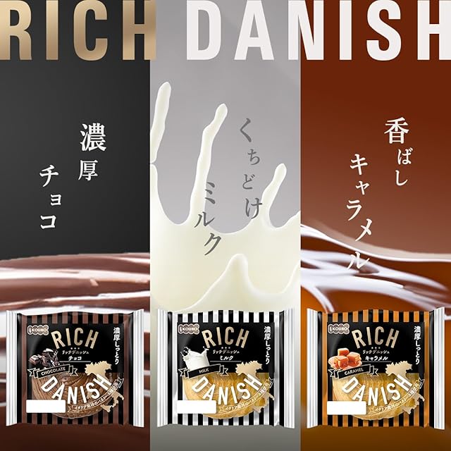 【栄養成分表示】1個あたり:「チョコ」ネルギー334kcal、たんぱく質5.6g、脂質15.2g、炭水化物43.0g、食塩相当量0.4g(日本食品標準成分表より計算)「ミルク」エネルギー345kcal、たんぱく質5.3g、脂質15.4g、炭水化物45.5g、食塩相当量0.4g(日本食品標準成分表より計算)「キャラメル」エネルギー339kcal、たんぱく質5.2g、脂質15.4g、炭水化物44.1g、食塩相当量0.5g(日本食品標準成分表より計算)