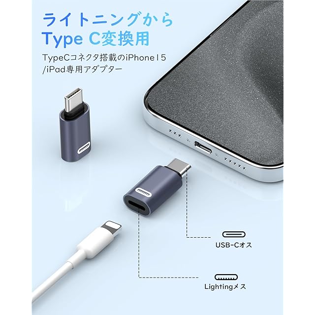 「端子が異っても繋げる」アダプターが1つあるだけで、端子が異っても繋げればスムーズに充電されるようになるライトニングからUSB-Cに変換用の変換アダプタです。※本製品はPD充電やデータ転送をサポートしていますが、OTG機能を対応しませんので、イヤホン/通話/マイク/音楽/ビデオ/メモリスディック/マウスなどにも対応しません。