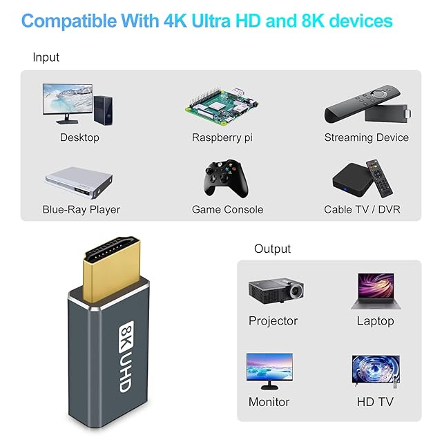 【注意】これはHDMIオス-HDMIメスアダプターです。お使いのデバイスのHDMIポートであることを確認してください。