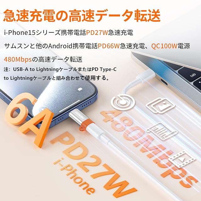 重要な注意:このTypec Light-ning 変換は、携帯電話とコンピュータ間の充電とデータ同期のみを可能にします。OTGビデオおよびオーディオ機能、ヘッドフォン、A-pple Pencil(第1世代)、マウス、キーボード、フラッシュドライブ、カードリーダー、プリンター、マイク、カメラ、その他のデバイス接続には対応していません。