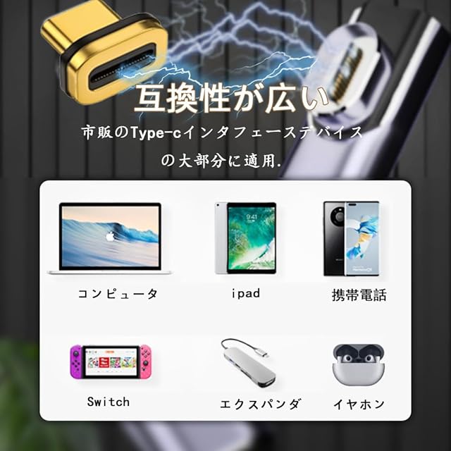 2.磁気吸引設計、簡単で実用的。新しい磁気設計のUSB C磁気アダプタ専用Type-c端子を採用し、自動磁気接続ができ、充電とデータ転送を容易かつ迅速に実現する。24本の金めっきを行い、信頼性と耐久性を確保します。