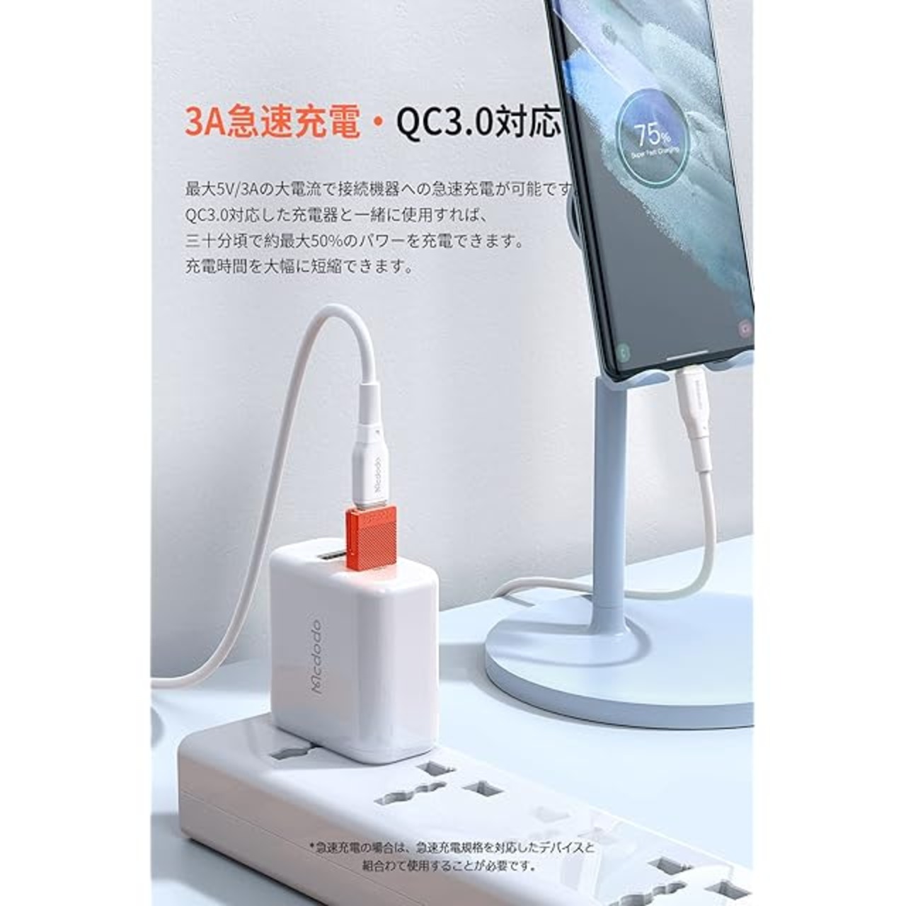 【3A急速充電・QC3.0対応】:このUSBアダプタは、最大5V/3Aの大電流で接続機器への急速充電が可能です。またQC3.0を対応し、QC3.0対応した充電器やACアダプタと一緒に使用すれば、三十分頃で約最大50%のパワーを充電できます。充電時間を大幅に短縮できます。【安全保護内蔵】:Type-C端子には56KΩの抵抗保護実装しており、接続デバイスへの過充電保護、短絡保護などの安全保護を提供できます。