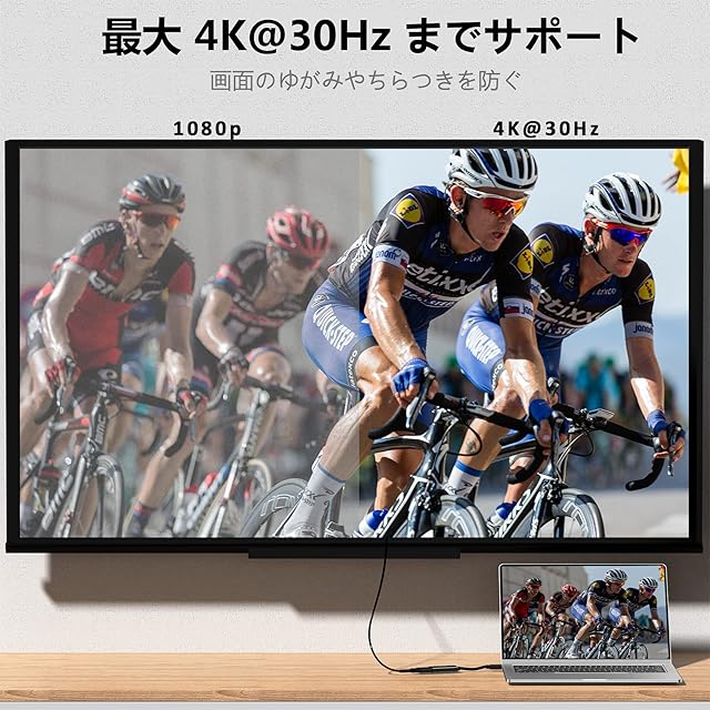 錫メッキ無酸素銅と箔&編組シールドの組み合わせで、ケーブルの中心から「アルミシールド(ツイストペアケーブル)→アルミシールド→高密度編組シールド」と3重のシールド処理で、ノイズによる映像信号や音声信号の劣化を防ぎます。抜群のケーブル性能と信頼度の高い接続を実現。■サビにも強く、経年変化による信号劣化の心配が少ない金メッキ処理を施したコネクタを採用され、ケーブルの性能を向上しています。■成形ストレインリリーフを採用されたロープロファイルコネクターでお使いのパソコンの隣のポートの邪魔にならず耐久性にも優れ、人間工学に基づいて設計されたトレッドを採用され、ケーブルを簡単に挿抜可能.■NXP/Bridgeluxのチップを採用で性能がもっと安定になります。最大限の伝導率を実現可能の32AWG錫メッキ無酸素銅(OFC)、耐腐食性と耐久性がある