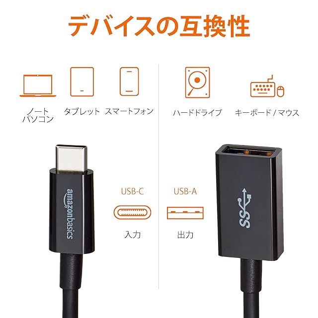 商品内容:データ、写真、音楽の転送用5.5インチ15WのUSB-C 3.1 Gen1 to USB-Aアダプター充電ケーブル1本。USB 3.0および2.1に対応。