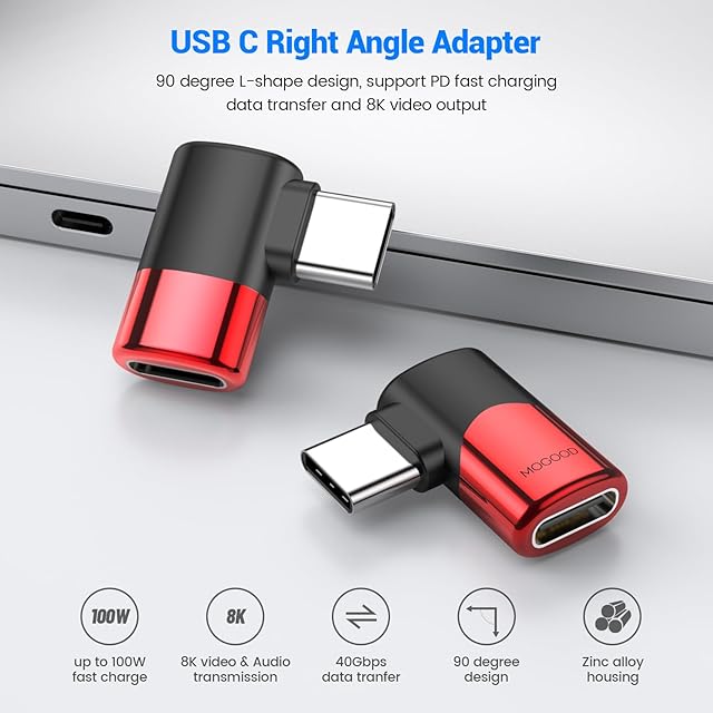【40 Gbpsデータ転送】USB CアダプタはUSB 4規格、つまり40 Gbpsまでのデータ転送速度に準拠している。映画や音楽などを数秒で転送できます。データ転送速度USBデバイスやケーブルがサポートされているかどうかにもよります。90度USB-CオスからUSB-Cメスアダプタ。