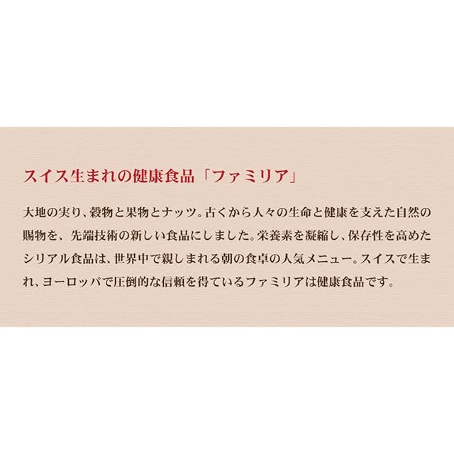 スイスで生まれ、ヨーロッパで圧倒的な信頼を得ているファミリアは健康食品です。