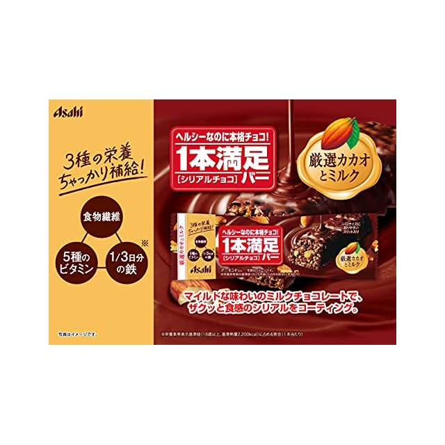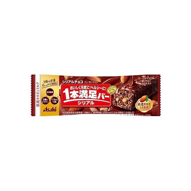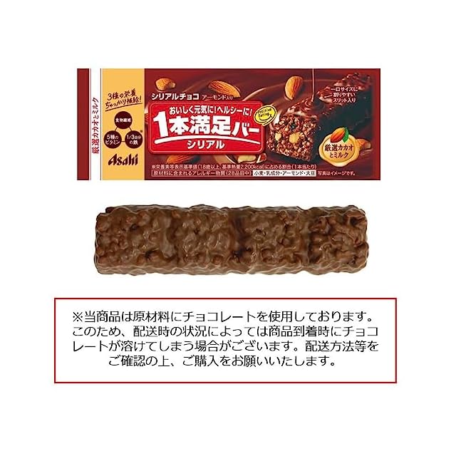原材料:砂糖、コーンフレーク、カカオマス、全粉乳、ココアバター、アーモンド、植物油脂、レーズン、小麦パフ、グルコマンナン、セルロース、乳化剤(大豆由来)、香料、V.E、V.B6、V.B2、V.B1、V.B12