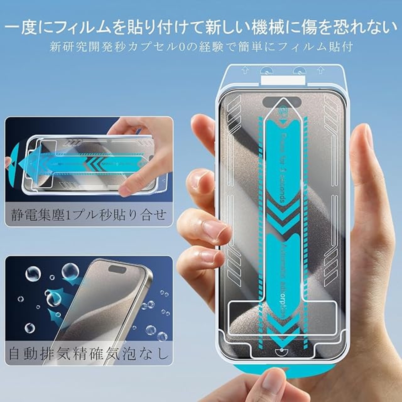 ★★★★★【ガイド枠付き】製品には専用の位置決め枠を付属したので、フィルムを貼り場所を外れる心配がありません。しかも自動吸着がもっと楽で便利です。更にこの位置決め枠は使い捨てではなく、何度も繰り返して使用可能です。