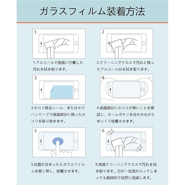 ★★★★★【 貼り付けやすい 】弊社のガラスフィルムは自動吸着式強化フィルムなので、気泡が入りにくいです。強化フィルムを携帯電話の画面に置いて、シリコンを利用して自動的に吸着します。日本のAGC旭硝子素材を使用し、3Dラウンドエッジ加工したので、使用中に鋭い角が指を怪我しなく、安心に使えます。3D処理して、超クリアで、画像の立体感もアップして、ロスレスな画質を実現します。更にメタカラー表示技術を搭載し、地金の視覚感を再現します。(強化フィルムが8枚あるので、とてもお買い得です)。