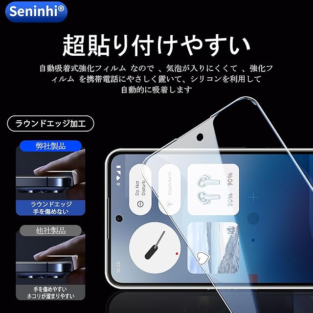 ★★★★★【 Seninhi品質保証に関しては 】Seninhは長年にわたり、ガラスフィルの生産に専念しております。今まで最初の願望を保持しており、年間で500,006枚の携帯電話スクリーンプロテクターを販売しており、お客様に高品質のガラスフィルムを提供しようと目指しております。しかも技術の研究開発に挑戦し続けて、研究開発投資もどんどん増資しております。お客様に最高品質の製品を提供するよう努め、我々の製品は価値があると信じてください。万が一、「割れ」「サイズ違い」「初期不良」等の不具合がございましたら、お気軽に弊社までご連絡ください。(お問い合わせ先:「カスタマーサービス」に入り、「注文履歴」-「出品者」カスタマーサービスへご質問ください。私たちはお客様にご満足いただけるよう最善を尽くします。)