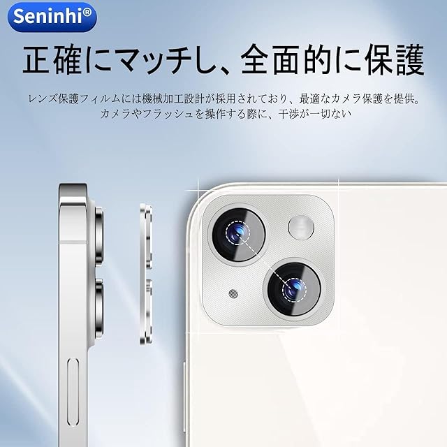 Seninhi 【 日本旭硝子製素材 - 高 品質 レンズ保護フィルム 】対応 iPhone13 / iPhone 13 Mini カメラフィルム アルミ合金製 アイフォン13/13 Mini レンズフィルム 強化ガラス iPhone 13 /iPhone13 Mini 保護フィルム ケース カバー 防爆裂 一体感 撥油性 超耐久 高光沢 超薄型 液晶 防塵 防滴 薄型 硬度9H 防指紋 衝撃吸収 貼り付け簡単 鎧のパターン仕様 (iPhone13-シルバー)