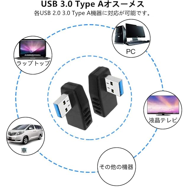 2.異な向きの2個セットです。角度変換、方向変換,この製品を使うことによりUSB端子の向きを変換する事で、スッキリした配線の引き回しや、出っ張り、引っ掛かり防止にも効果的な製品です。