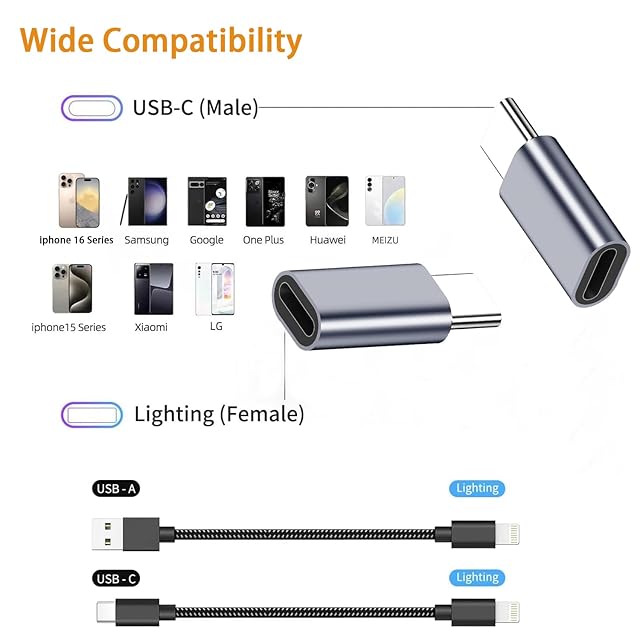 【幅広い互換性】ライトニングからタイプc 変換アダプタ For i Phone 16/16 Plus/16 Pro/16 Pro Max; i Phone 15/15 Plus/15 Pro/15 Pro Max; Samsung Galaxy S23, S23 +, S23 Ultra, S22, S22+, S22 Ultra, S21, A60, Z fold; Google Pixel 7/ 7 pro/ 6/ 6A/ 6 pro/5/5A/5 pro; Hua-wei Mate 60, 60 Pro, 60 Pro+, P50, P50 Pro, P60, P60 Pro, Power Bank, PC, およびその他のタイプCデバイス.