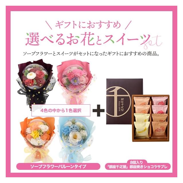 *~ ソープフラワーバルーンタイプ&銀座千疋屋「銀座焼きショコラサブレ」8個 ~*バレンタインの贈り物にいかがでしょうか ~