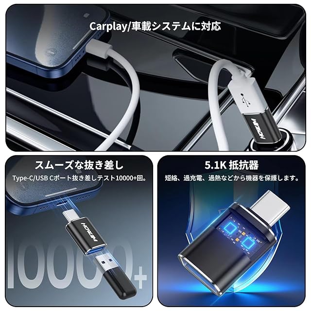 OTG機能搭載:タイプC 変換は外付けハードドライブ、USBフラッシュドライブ、マウス、キーボード、ゲームコントローラー、カードリーダー、プリンター、カメラなどのUSBデバイスをUSB Type-Cポート搭載のスマートフォンやタブレットに接続でき、仕事、遊び、勉強などの多様なニーズに対応します。注:接続するデバイスはOTGに対応している必要があります。